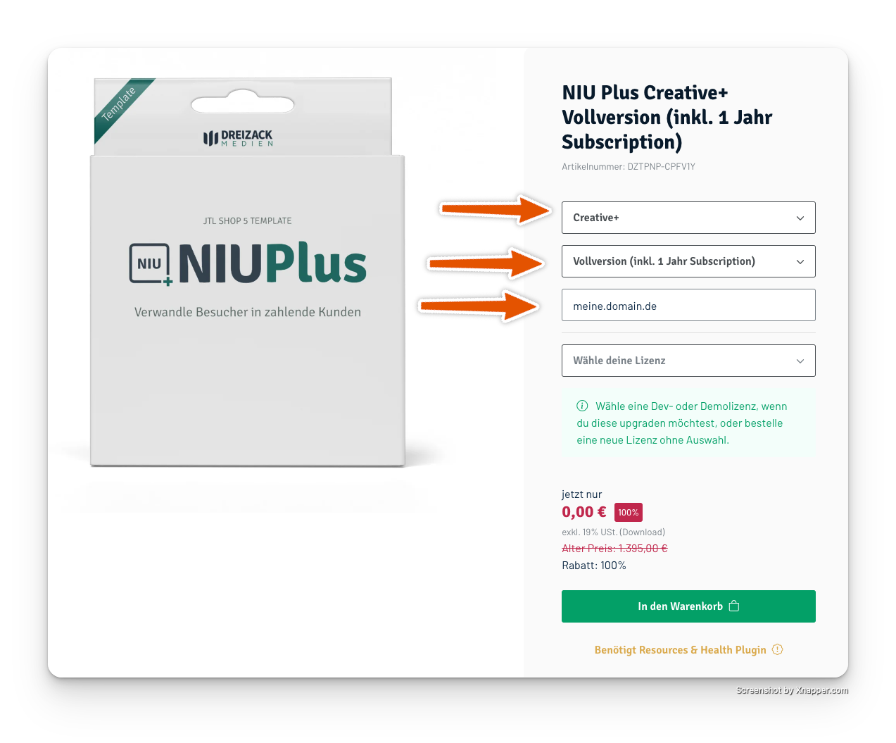 Wähle unter https://store.dreizack-medien.de/DZM-NIUplus-Template-Suite das passende Paket und die passende Kaufoption aus