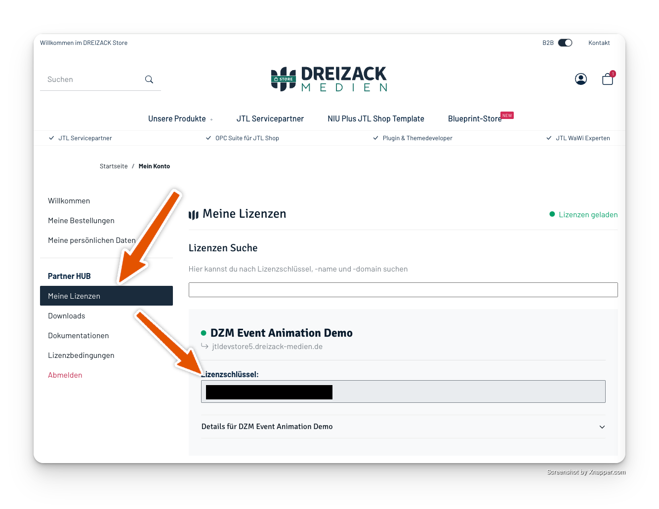 Wechsel in unserem Store in dein Kundenkonto unter Meine Lizenzen und kopiere dir den Lizenzschlüssel für deine Domain.