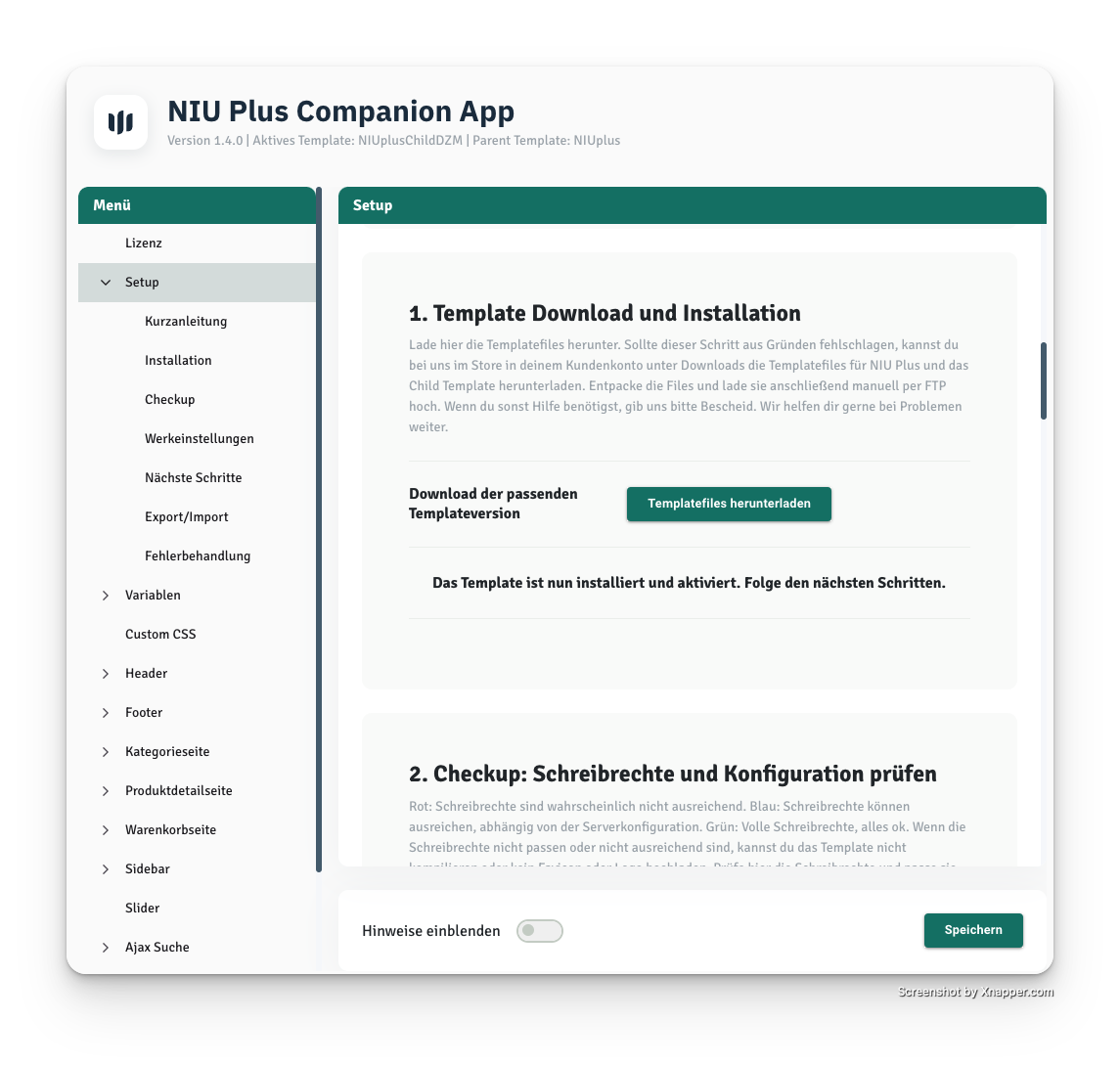 Herzlichen Glückwunsch! Dein NIU Plus Template ist nun einsatzbereit.