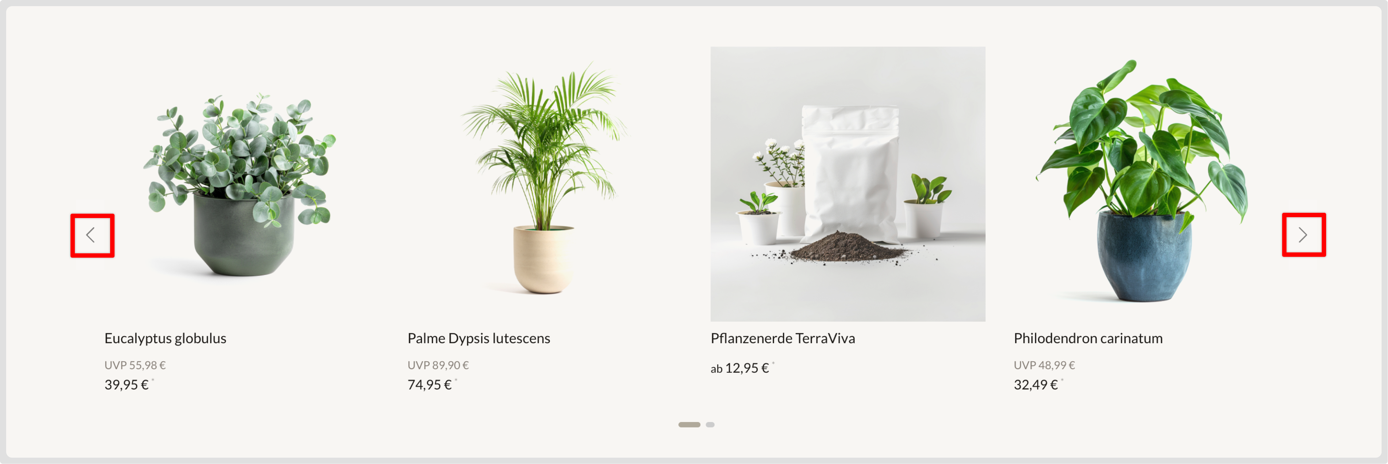 Hier kannst du flexibel einstellen, wie viele Slides je nach Bildschirmgröße angezeigt werden sollen. Standardwerte: XS = 1, SM = 2, MD = 4, XL = 4 Definition der Bildschirmgrößen: XS = >576px, SM = ≥576px, MD = ≥768px, XL = ≥1200pxDarstellung