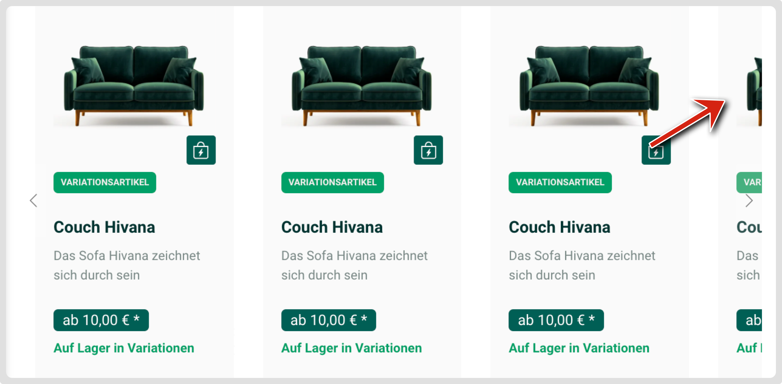 Wenn aktiviert wird die erste, nicht mehr sichtbare Karte etwas angeschnitten angezeigt, damit dem User vermittelt wird, dass er weiter sliden kann, um mehr zu sehen.