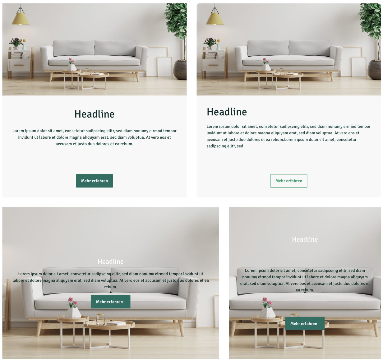 - 2 Designs: Bild im Hintergrund, Text unter Bild